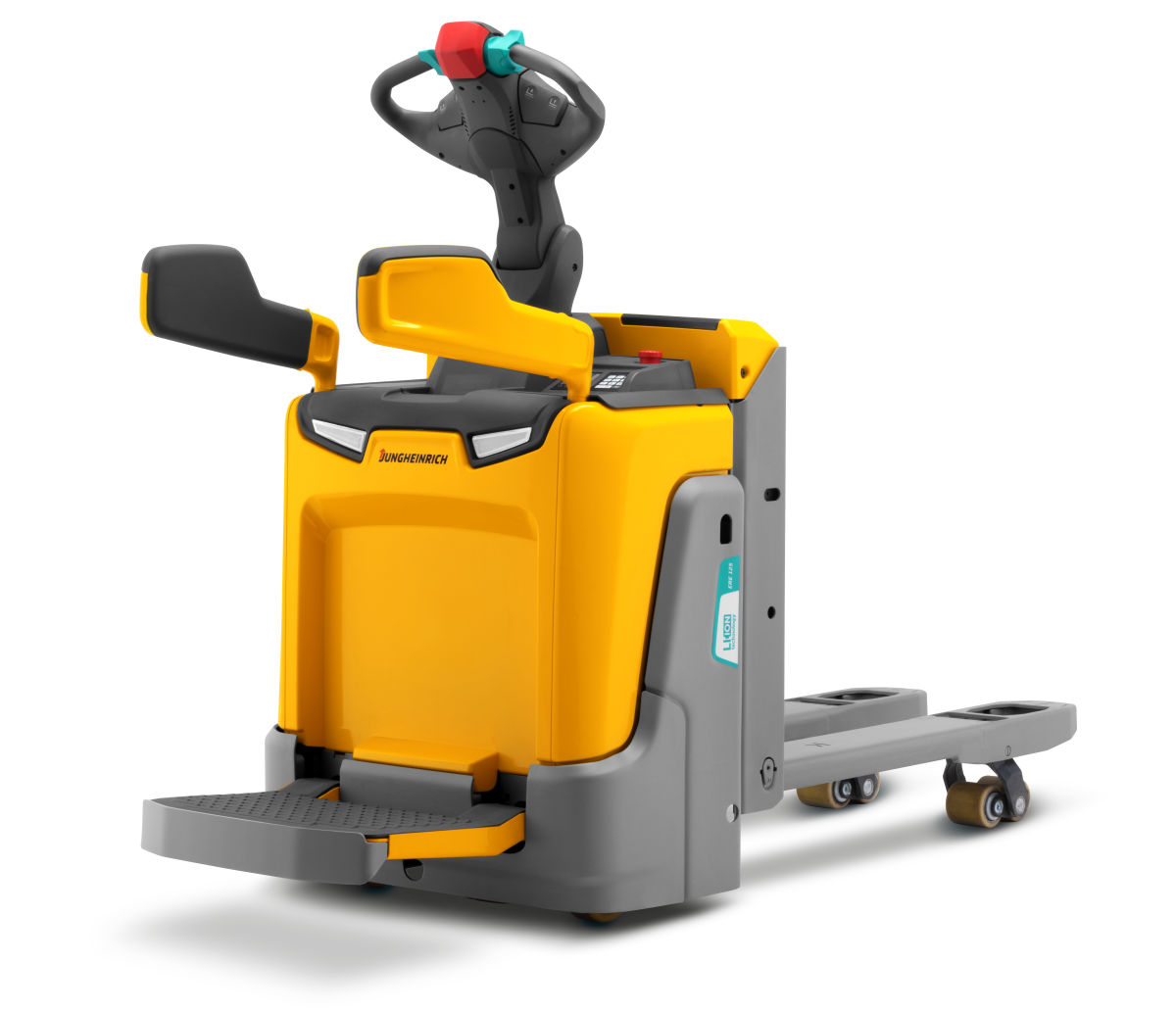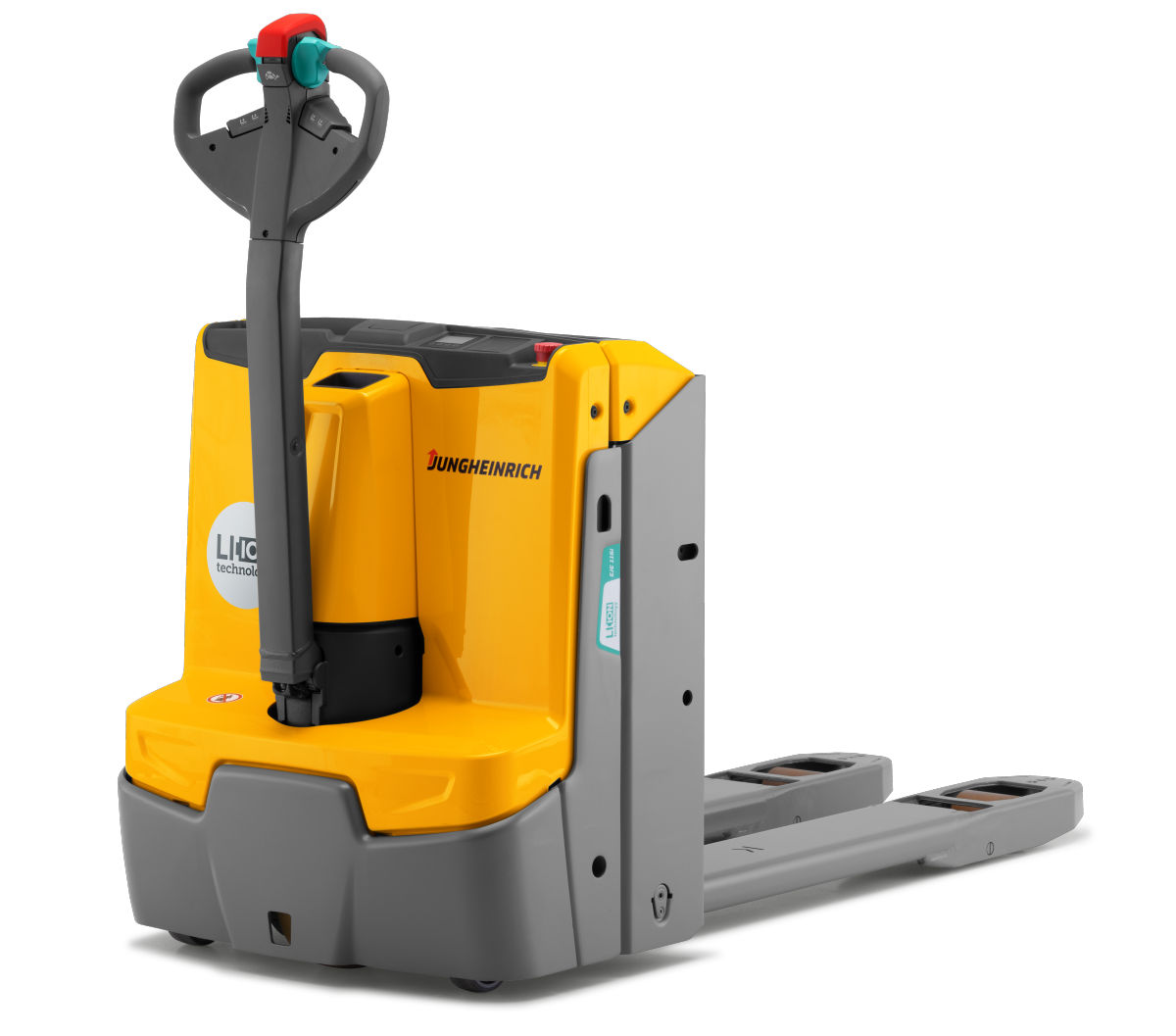 Equipo potente y de bajo mantenimiento, los Transpalets Eléctricos de la multinacional alemana JUNGHEINRICH son ideales para la expedición de mercancías en áreas comerciales o en almacenes angostos, así como para el transporte de mercancías en recorridos cortos, medios y largos. Fáciles y cómodas de usar con la característica principal de transportar cargas desde los 1.200 kg hasta los 3.500 kg y que al mismo tiempo son equipadas con innovadora tecnología trifásica como una forma de corriente alterna a la red eléctrica regular.